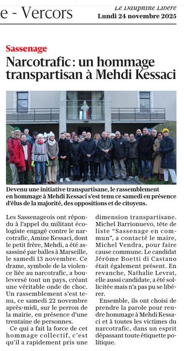 Suite Ă l’article paru le Samedi 14 juin 2025 dans la rubrique Sassenage, du DauphinĂ© LibĂ©rĂ©, je tiens Ă exprimer toute ma solidaritĂ© avec chacune et chacun des Conseillères et Conseillers municipaux du groupe s’Unir pour Sassenage, qui, par la voie judiciaire ont exprimĂ© le dĂ©sir de voir le CCAS de Sassenage, maintenu Ă son emplacement.