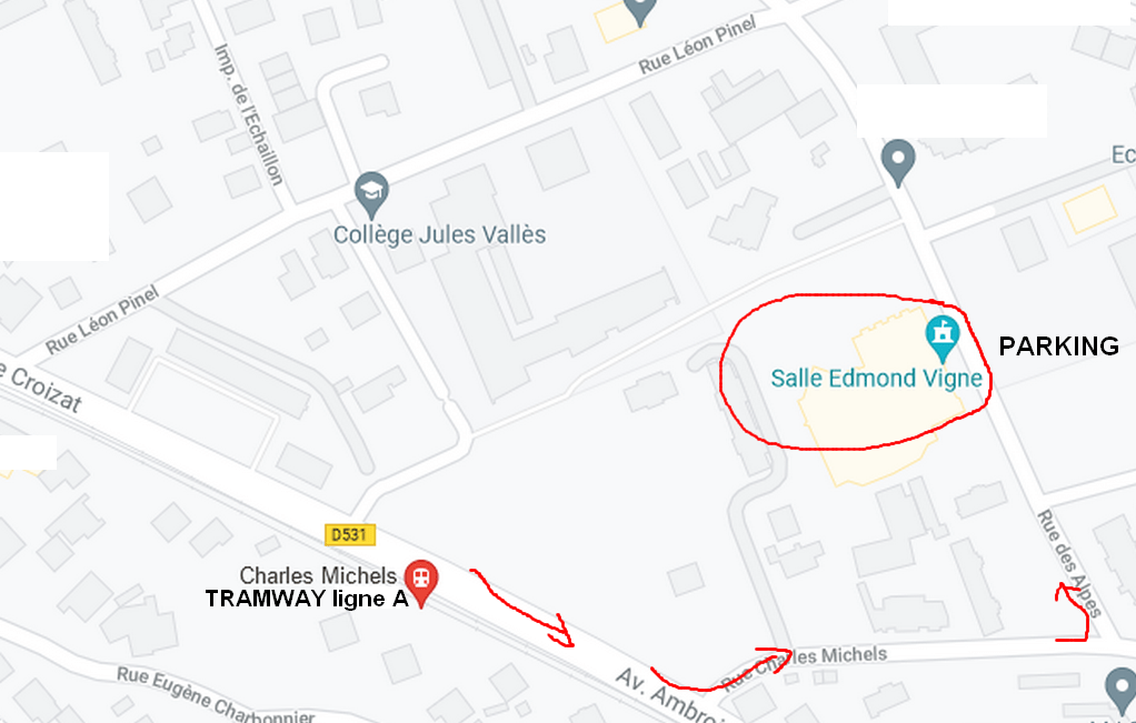 SI VOUS VENEZ EN TRAM, prendre ligne A arrêt Charles Michels, remonter l’Avenue Ambroise Croizat , tourner à gauche rue Charles Michels et de nouveau à gauche rue des Alpes (environ 450m, 5 minutes de marche à pied).